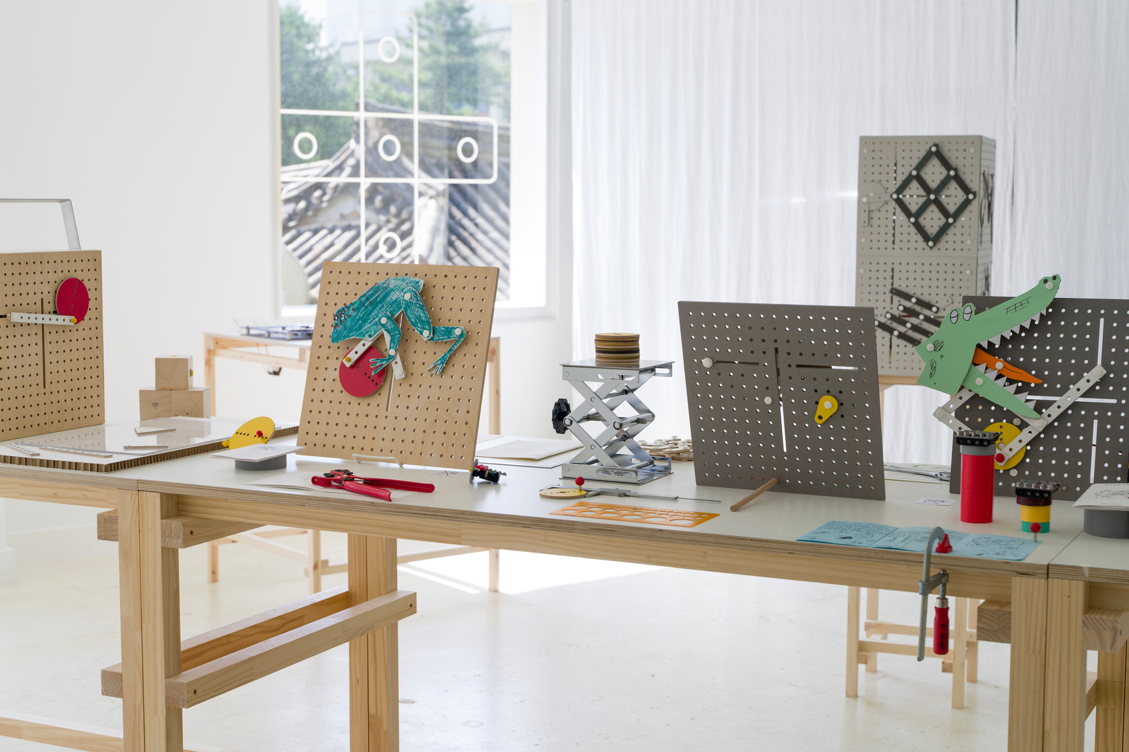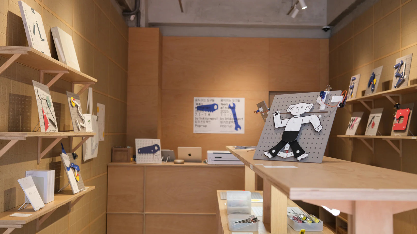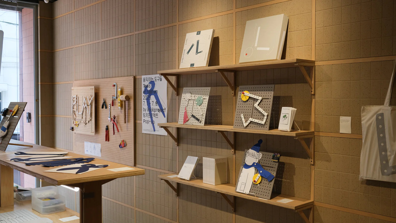 In this pop-up store, various LINKKI constructions are displayed with the theme of "tool," along with collaborative works with illustrator Yoonhee Yi.